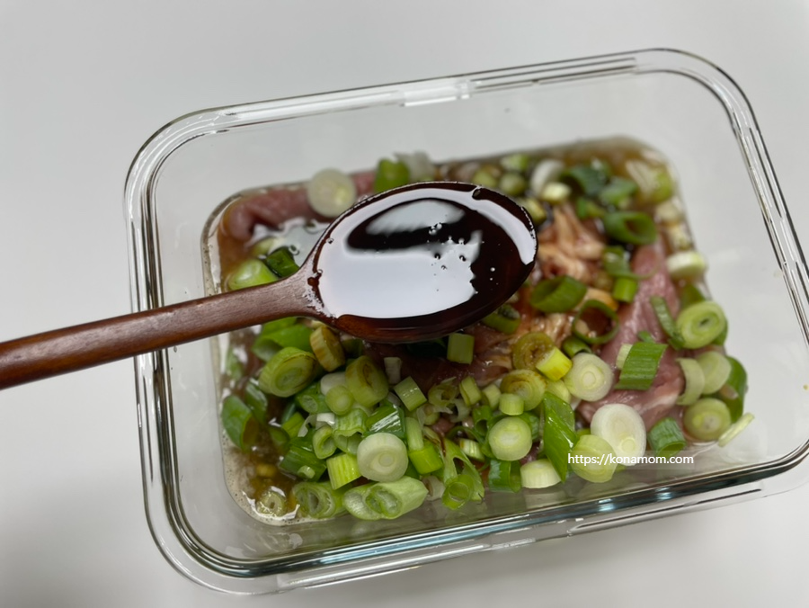 진간장 6스푼을 넣어 줍니다. 진간장은 고기 100g당 간장 1스푼이 적당하다고 합니다.